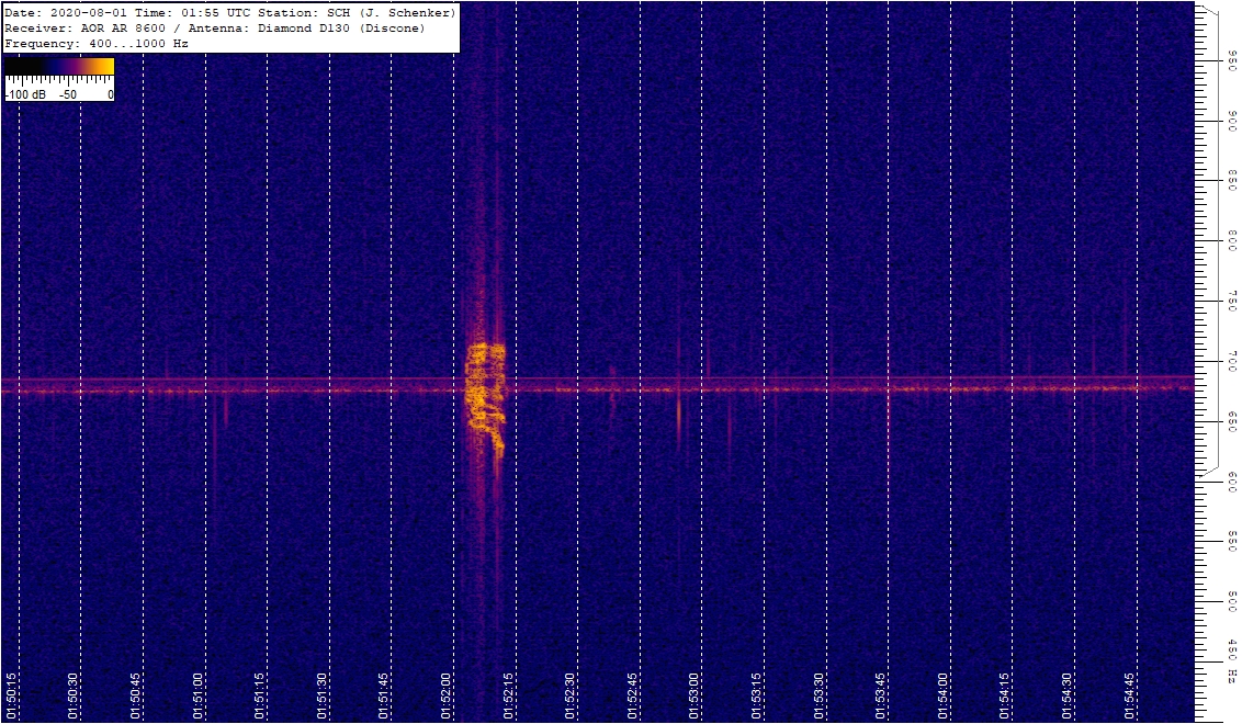 Das Weltall spürt nichts von der Corona-Problematik. Die Erde dreht unverdrossen ihre Runden um die Sonne weiter. Am 12. August befand sie sich wieder an der Stelle, wo der Komet 109P/Swift-Tuttle seine Staubspur hinterlassen hatte. Infolge Kollision mit diesen Teilchen kommen wir jeweils in den Genuss eines Sternschnuppen-Schwarms. Da alle zu diesem Meteorstrom gehörenden Sternschnuppen aus dem Sternbild Perseus zu kommen scheinen, heissen sie Perseiden. Jeweils in der Nacht vom 12. auf den 13. August ist die Teilchenwolke am dichtesten und generiert am meisten Meteore. Sobald es dunkel genug ist, können wir sie über den Nachthimmel huschen sehen und uns dabei jeweils etwas wünschen! Aber oje, was wird aus unseren Wünschen bei bewölkten Himmel? Oder wenn die Zahl der Wünsche grösser ist als die Zahl der beobachteten Meteore? Dafür gibt es eine simple Abhilfe: Meteore lassen sich nicht nur beobachten, sondern auch abhören! Und dies erst noch bei Tag und Nacht und bei jedem Wetter. Mittels der Radio-Methode hören wir viel mehr Meteore, als wir sehen können! Denn auch kleine und erst recht grosse Meteore (resp. die von ihnen generierten Luftkanäle aus ionisierten Molekülen) reflektieren das Signal eines weit entferten Senders, zumindest für eine bis mehrere Sekunden lang, welches wir mit unserer Antenne auf der Schafmatt prima abhören und aufzeichnen können. Und da in dieser Nacht sehr viele Meteore zu hören sein werden, kommt wohl ein regelrechtes Konzert zusammen! Und das Beste: Als Benefiz-Konzert war der Eintritt frei! Weiteres Info-Material über diese "Musik-Band" oder wer sich vertiefter mit Meteoren befassen möchte, möge sich der Fachgruppe Meteorastronomie anschliessen. |