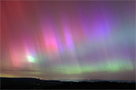 geschleudert wurden. Die elektrisch geladenen Teilchen (Protonen und Elektronen, sog. "Sonnenwind") werden durch das Erdmagnetfeld abgelenkt und regen die oberen Schichten der Erdatmosphäre zum Leuchten an.