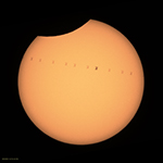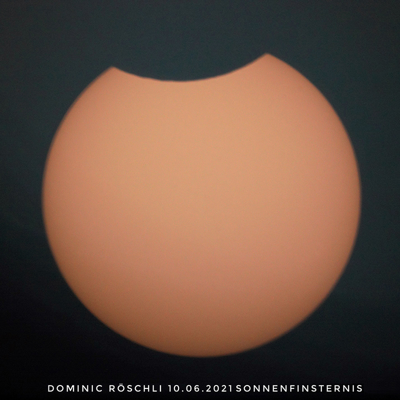 Am 10. Juni fand in der Zeit zwischen 11:29 und 13:14 Uhr (MESZ) eine Sonnenfinsternis statt. Dabei wurde die Sonnenscheibe, von der Schweiz aus betrachtet, zwischen 4 und knapp 8% durch den Mond bedeckt. |