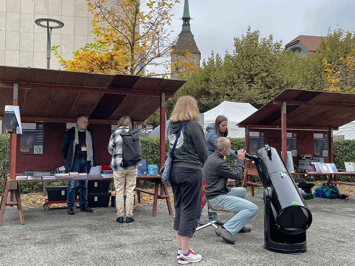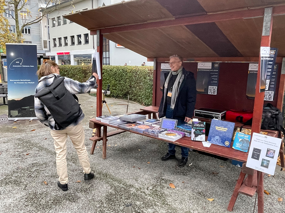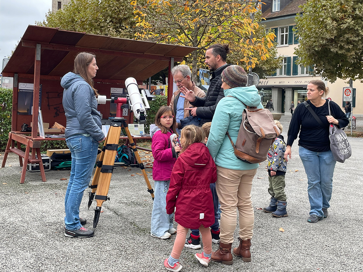 AVA goes public: Zum diesjährigen Tag der Astronomie präsentierten Mitglieder der AVA die Aktivitäten und Möglichkeiten unseres Vereins in der Aarauer Altstadt. Trotz bedecktem